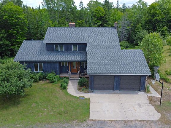 Welcome to this enchanting estate on a sprawling 40-acre property boasting breathtaking views & an array of natural wonders. Nestled along the tranquil banks of Pekkala & Denomie Creek, this remarkable residence, built in 1991, offers a harmonious blend of picturesque beauty & luxurious living. As you approach the house, you'll be captivated by the serene landscape adorned with majestic apple, plum, & pear trees. Step inside this meticulously designed dwelling, & an aura of warmth and sophistication will embrace you. The seamless fusion of modern architecture and timeless charm is evident in every detail. 48 Vast-sized windows bathe each room in abundant sunlight, creating an inviting & airy atmosphere. The heart of the home is centered around a magnificent floor-to-ceiling wood-burning fireplace, radiating warmth & elegance. The adjacent living area offers panoramic views of the surrounding landscape. The kitchen is a culinary haven with top-of-the-line appliances, ample counter space, & a thoughtfully designed layout. The dining area nearby provides the perfect spot to savor meals & create lasting connections. The primary suite is a true sanctuary, offering a peaceful retreat on the main floor. Vaulted ceilings, a spacious layout, & an ensuite bathroom exude an air of luxury & relaxation. Additional bedrooms offer versatility and can serve as guest rooms, home offices, or creative spaces to suit your needs. The finished lower-level walk-out adds additional living space, perfect for entertaining or accommodating guests. Unwind in the private sauna, a tranquil oasis in your home. Outside, the property invites exploration & connection with nature. Take leisurely walks along the 1500+ feet of frontage & immerse yourself in the tranquil surroundings & the soothing sounds of the flowing water. This estate offers the perfect blend of convenience & seclusion, conveniently located near L'Anse golf course, the hospital, & schools. Call today for a private tour!
