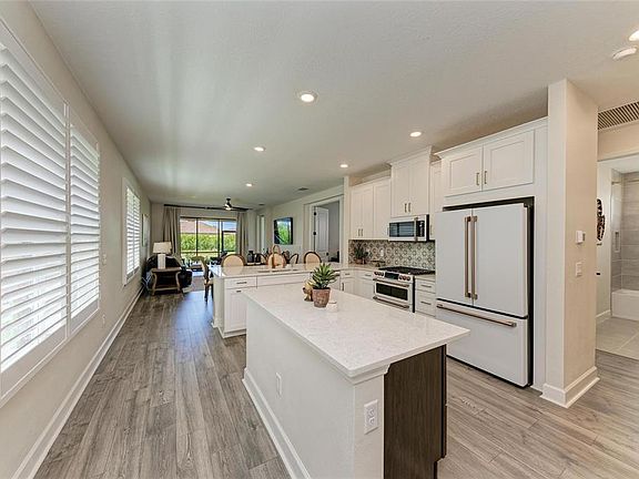 Welcome to your dream home in the highly sought after community of Park East at Azario in Lakewood Ranch, Florida. This beautifully designed, single-family residence blends modern elegance with timeless comfort, offering the perfect balance for both relaxation and entertaining. Step into this impeccably decorated and totally upgraded 3 Bedroom, 2.5 Bath home, the spacious open-concept layout is accentuated by modern finishes, designer fixtures, and abundant natural light, creating a avant-garde yet inviting ambiance throughout. High ceilings and stunning architectural details accentuated with an amazing gourmet kitchen featuring stone countertops, custom cabinetry, a large center island, and state of the art GE Cafe Matte Appliances making it a chef’s delight and the heart of the home. The kitchen flows seamlessly to the living and dining areas that are perfect for entertaining guests or relaxing with family. The spacious main suite with oversized windows includes a luxurious spa-like bathroom with dual vanities, and a walk-in shower, along with an expansive custom walk-in closet. Additional two bedrooms are generously sized and perfect for family, and guests. There is also a separate private home office and/or flex room with tons of natural light! Enjoy Florida living at its best with a screened brick paver lanai overlooking manicured landscaping. The outdoor area is ideal for entertaining or simply soaking up the sunshine year-round. This area is also ready for an outdoor kitchen since all the necessary plumbing, electric and gas have been installed. **Designer Luxury Upgrades That Make This Home Genuinely Move In Ready** *Gourmet chef’s kitchen with stone countertops, custom cabinetry, and top-tier GE Café Matte appliances* *Spa-inspired master suite with a walk-in shower and high-end fixtures and comfort height commodes in both baths* *Wide plank luxury laminate flooring throughout all living areas except two bedrooms (extra flooring is in the garage ready for installation)* *Smart home automation for appliances* *Kitchen and Family are pre-wired for Sonos speakers in the ceiling* *Custom closets and storage solutions throughout* *Upgraded Eight foot doors throughout* *Designer lighting fixtures, upgraded fans, and recessed lighting* *Large windows for abundant natural light and premium window plantation shutters throughout the home* *Quiet, dedicated home office with Solid French doors* *Spacious covered and screened brick paver lanai ~ pre plumbed for outdoor kitchen* *Two-car garage with epoxy flooring and tons of extra hanging storage ~ plus ceiling fan* Located in one of America's top master-planned communities, this home offers access to premier amenities: championship golf courses, scenic walking trails, vibrant dining, shopping, and top-rated schools—all just 30 minutes from the Gulf Coast’s beautiful beaches.