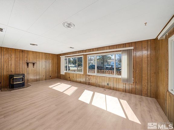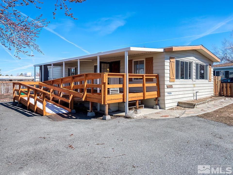 Quietly situated on a charming street within the popular Steamboat Springs Estates neighborhood of South Reno, this delightful manufactured residence has been lovingly maintained with thoughtful updates that preserve the original character. Positioned on a post and pier foundation with full skirting, on a lot nearly ¼-acre in size, this move-in ready 2-bed, 2-bath home features more than 1500 sq ft of bright, comfortable interior space., Welcoming you to the property is a large driveway that leads to a beautiful, covered deck (with ramp) – an ideal spot to relax and enjoy gorgeous views of Mt Rose, or entertain friends and family. Step through the front door to discover a generous living and dining room combo with a cozy fireplace, lovely laminate flooring, and several oversized windows that allow in plenty of natural light. Around the corner from the living room is a spacious kitchen with ample white cabinetry, extended counter space, and a breakfast bar with additional storage capacity. Just down the hall is a separate family room, complete with built-in display shelving, further cabinetry, and a glass door that provides a second entrance out onto the deck. New owners are sure to appreciate the light and bright master bedroom with an oversized closet space, vanity area, and ensuite bathroom with its own private shower stall. Not to be outdone, the fully fenced exterior of the property provides low-maintenance landscaping with a detached 2-car garage and plenty of extra room to park vehicles, so be sure to bring your toys! What’s more? This property offers quick and easy access to area schools, Hwy 395, and several sought-after shopping and dining destinations. Affordable, well-maintained homes in this incredible location are guaranteed to sell quickly, so be sure to add this one to your must-see list while you still can – schedule your showing today!