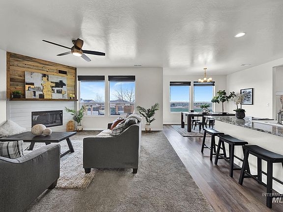 Stunning 5 Bedroom home with Boise Mountain Views! Welcome to your dream home! This beautifully designed 5 bedroom, 2.5 bathroom gem features an open floor plan with granite countertops and sleek white cabinets that create a clean and modern aesthetic. The oversized island in the kitchen is perfect for meal prep, entertaining , or just relaxing with family and friends. Freshly painted with brand new carpet throughout, this home feels as good as it looks! A cozy fireplace adds warmth to the living space, and the mudroom bench is perfect for keeping your home organized and tidy. Step outside onto the expansive deck, where you can enjoy stunning views of the Boise foothills-a perfect setting for morning coffee or evening BBQ's. Green thumbs will love the garden boxes ready for your next planting project. With five bedrooms plus an office, there's room! The garage looks like a 2 car but is a tandem 3 car, RV parking behind the fence, solar panels, and conveniently located.