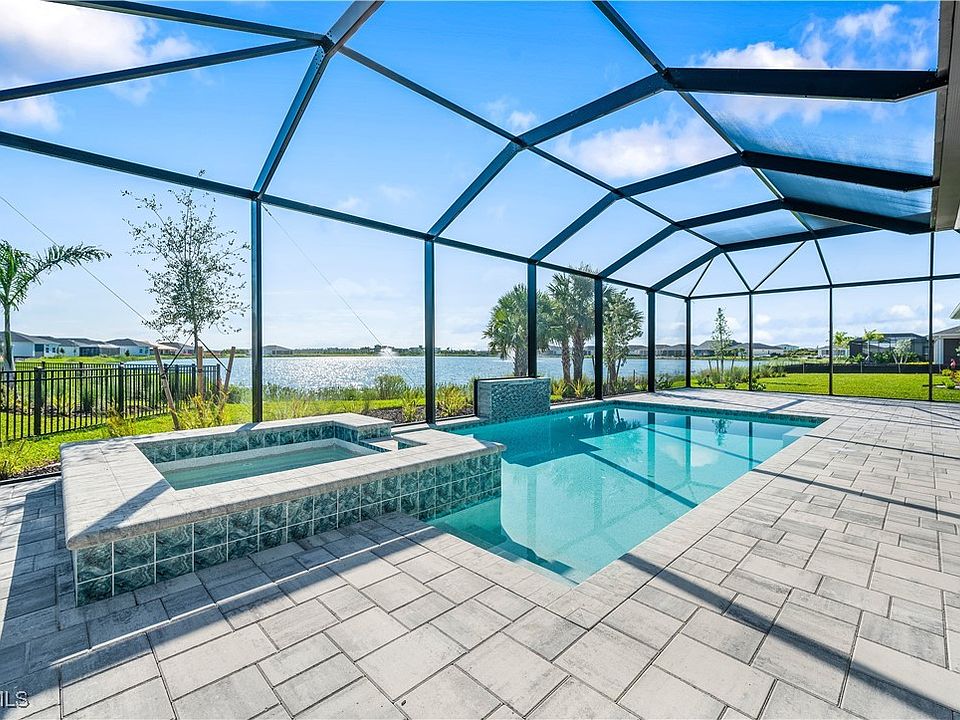 Stunning New Construction Waterfront Home in Babcock Ranch – Move-In Ready! Experience luxury lakefront living at its finest in this brand-new, beautifully crafted home located in the highly sought-after, active 55+ community of Babcock Ranch. Featuring breathtaking eastern lake views, this move-in-ready home showcases an expansive outdoor oasis with a sparkling pool, spa, and oversized covered lanai—perfect for sunrise coffees and serene evenings. Step inside to a spacious, open-concept floor plan designed for both entertaining and everyday comfort. Gorgeous tile flooring flows throughout, complemented by a gourmet kitchen that is a chef’s dream—featuring quartz countertops, a full suite of stainless steel appliances, a gas cooktop, and a generous island with bar seating. Impact-resistant windows and doors provide safety, style, and energy efficiency. Retreat to the luxurious primary suite with a spa-like bathroom boasting a walk-in rainfall shower, dual vanities, and a large walk-in closet. Additional highlights include Jack-and-Jill guest bedrooms, a versatile flex space for a home office or den, and a massive 3-car garage for all your storage needs. Enjoy the benefits of new construction with a builder warranty and cutting-edge energy-efficient features. Residents of this vibrant 55+ community enjoy exclusive access to a private amenity center with a full-time lifestyle director, fitness facilities, resort-style pool, pickleball courts, social events, and more. Live the lifestyle you’ve been waiting for—schedule your private tour today! Please see MLS supplements for interior design selections and floor plan layout. Lot 4606.