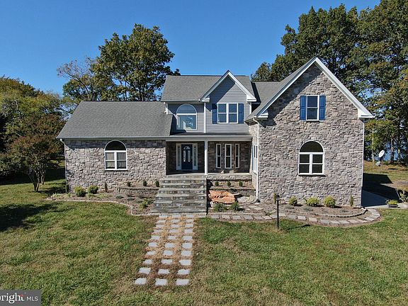 River front property with views from every window. Located on Mathias Point, in King George is only 75 minutes from DC, 90 minutes from Richmond and 10 minutes from convenient shopping and dining. Expansive western views offer amazing water sunsets year round. Find peace and tranquility on ten silent, private, park-like acres surrounded by forests and farmlands that will never be subdivided. This custom home has luxury touches throughout including Brazilian Mahogany hardwood floors, spa shower with waterfall feature in the master bath suite, three sided fireplace, stained glass doors to the formal dining room, three low maintenance composite decks. Upper level features a coffee bar. The gourmet kitchen boasts quartz Silestone countertops & butler's pantry with beverage refrigerator, two dishwashers, gas cooktop, a convection oven with warming drawer and plenty of storage space. The open, airy floor plan perfect is for entertaining, indoors or out. The finished basement with walkout access includes a recreation room, full bathroom, and a utility kitchen that could easily be transformed into an in-law suite or a living space... This exquisite home offers self-sustaining features such as a whole house generator, deep private well, underground propane, whole house water filtration, and hybrid HVAC. 2-10 Home Warranty is transferable. Enjoy exceptionally low taxes and utilities, excellent unlimited wireless internet.
