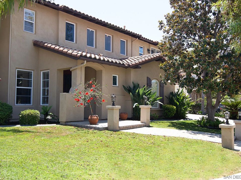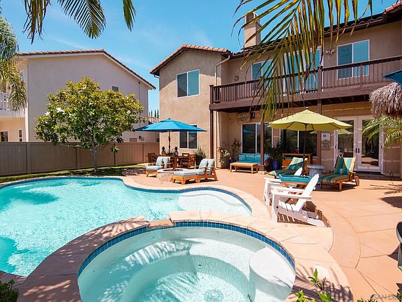 This home is a must see - Premier cul-de-sac lot in 4S Ranch at Talavera. This home has 5 bedrooms, 4.5 bath + office with built-in desk and cabinets (could be 6th bedroom-has closet) 1 bedroom 1.5 baths downstairs, totals 3,780 square feet. Kitchen has just been completely remodeled with custom kitchen cabinets, river washed quartz countertops, slow close cabinets and drawers, top of the line Thermador stainless steel appliances, 6 burner gas stove and double ovens with Wi-Fi, built in microwave, built in refrigerator with Wi-Fi, Zephyr wine refrigerator. Private and ready to entertain backyard with no homes directly behind you. It has a saltwater pool/spa, 3 hole putting green, gas firepit, gazebo with built-in BBQ and refrigerator, synthetic grass, palm and magnolia trees. Large master bedroom has canned lighting, ceiling fan, patio with new Trex decking. Master bathroom has double sinks, a separate tub/shower and large walk-in closet. Family room has built-in cabinets and entertainment center, wood floors, ceiling fan and fireplace.
