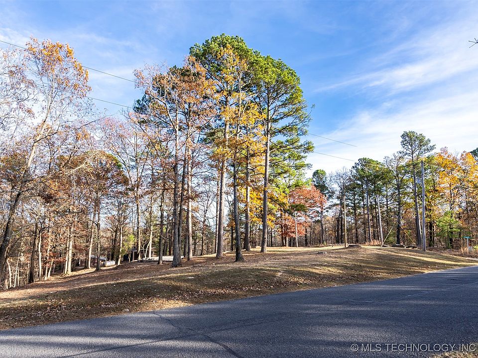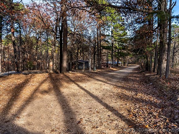 Large Pines on 1.3-acre Building Site includes two outbuildings, rural water, on-site septic, electric, fiber optic, and a new survey. Septic has been inspected and pumped. Corner lot on paved street; seller will remove concrete slab if preferred by buyer. Garage is 24x47 and Shop is 18x18. Embrace the wilderness lifestyle of 7,000-acre Flint Ridge gated community in NE Oklahoma. Private amenities including private roads where ATVs are a way of travel, private lakes, golf course & restaurant, tennis mini-golf and summertime canoe/kayak/raft shuttles on the Illinois River plus 3 swimming pools & 24-hour security. Minutes to Cherokee Turnpike making Tulsa & NW Arkansas easy access!