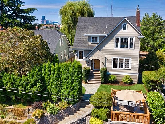 Quintessential Madrona home with tasteful renovations! Perched up high from street, this sun-drenched home boasts a great layout with city views. Main level invites entertaining with open kitchen, dining, living, powder. Upstairs are the master suite, 2 rooms & full bath. Master suite has vaulted ceiling, loft, & view balcony. Ground level has bonus room/4th bedroom, a flex room. Beautiful landscaping with private outdoor living spaces. Detached garage on street level. Restaurants & shops nearby