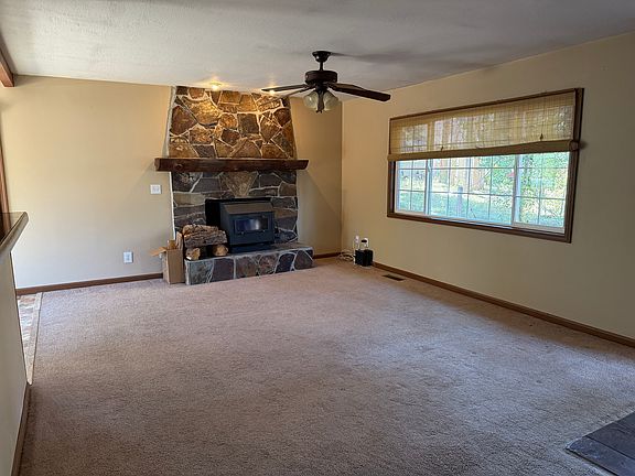Fireplace with Wood burning stove, washer and dryer setup for gas or electric, (washer and dryer not included) built in microwave, custom cabinets, Granite counter tops all around, Dishwasher, garbage disposal. All double pane windows, Bathroom has Travertine tile. Bedrooms have large closets.