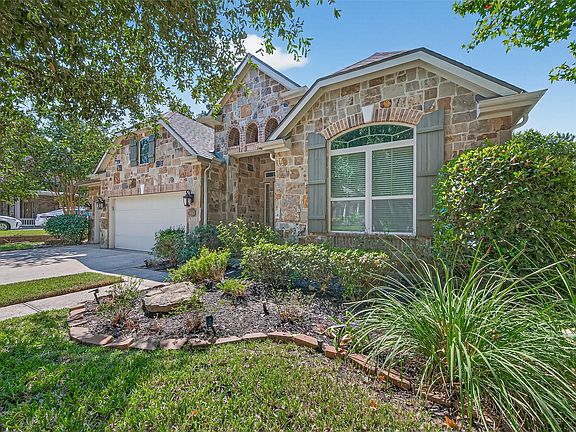 Welcome to an exquisite one-story Chesmar Home on The Links at West Fork. This 4-bedroom, 3-bathroom residence boasts a versatile gameroom/flex room, study/office, and a family room with a stone gas fireplace. The large island kitchen features stainless steel appliances, ample workspace, and custom cabinetry. Enjoy casual meals in the breakfast area or entertain guests in the formal dining room. The private primary bedroom offers tray ceilings and an en-suite bath with dual vanities, a garden tub, a separate walk-in shower, and an oversized closet. The fenced backyard showcases golf course views, a covered patio, and an extended rock area. Additional features include a full-house generator, a three-car garage, and ample attic storage space.Don't miss your opportunity to own this rare one-story home in a prestigious golf community with NO MUD, Low HOA & conveniently located to shopping and I-45.