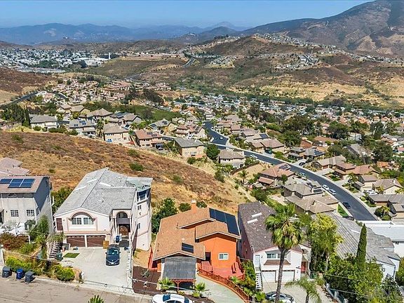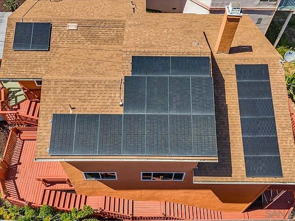ASSUMABLE VA LOAN 3.99% for qualified buyers. The home is equipped with *fully paid* solar panels and new windows, ensuring energy efficiency and comfort year-round. Stay cool during San Diego's summers while enjoying reduced energy costs! This unique oasis is just outside the hustle of the city, yet remains conveniently close to multiple military bases, beaches, and various recreational activities that San Diego is famous for. Admire the stunning views from the multiple expansive outdoor decks as well as from the living spaces including the kitchen, dining room, living room and even your private upstairs primary bedroom. This residence provides a scenic backdrop for daily living and entertaining. This neighborhood is truly a hidden gem of San Diego to be experienced!