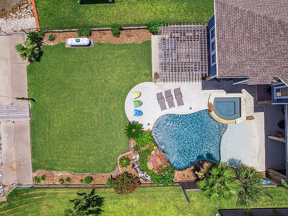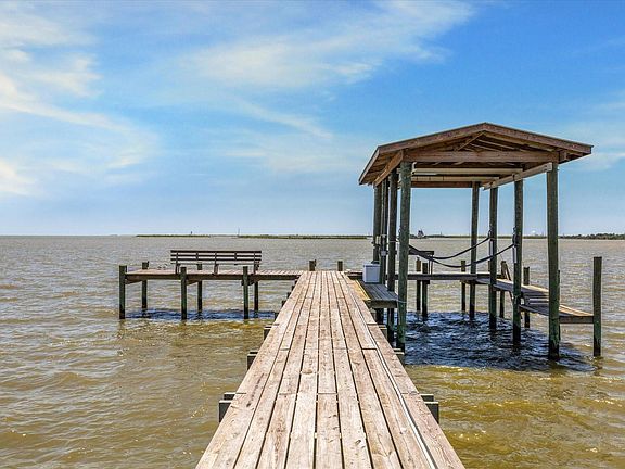 Stunning 3BR/2.5BA waterfront home on Galveston Bay! Enjoy panoramic views, a 350’ pier with remote boat lift, and a backyard oasis with pool, spa, waterfall, and outdoor kitchen. Fully remodeled in 2021, features include a Generac generator, elevator, storm shutters, 3-car garage with extra storage, and a cozy wood-burning fireplace. Quiet, private setting with sunrise views and high-end finishes throughout. A true bayfront retreat just waiting for you!