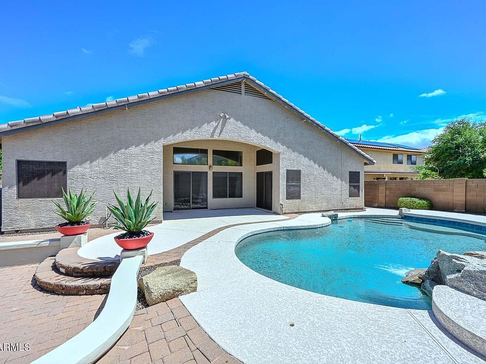 An entertainer's dream backyard featuring a custom-built pool with a tranquil waterfall and sun-soaked Baja shelf!! Must see for yourself!! The outdoor living space is fully equipped witha built-in BBQ & spacious entertaining area.