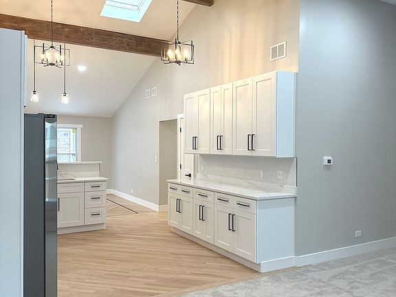 Experience elevated ranch-style living in this completely updated 3-bedroom, 2-bath Lockport home offering 1,779 sq. ft. of impressive design and comfort. From soaring ceilings to premium finishes, every detail has been curated to deliver a move-in-ready experience. The brand-new kitchen features oversized white cabinetry, quartz countertops, stainless steel appliances, and a spacious layout that opens effortlessly into the family room-complete with a cozy, modern fireplace. Throughout the home, you'll appreciate all new 2-panel doors, updated trim, fresh paint, and fully adjustable lighting, creating a cohesive, modern aesthetic enhanced by brand-new windows that fill each space with natural light. The primary bedroom is a true retreat, offering vaulted ceilings, generous space, and direct access to an enclosed porch. The luxurious primary bath boasts a gorgeous walk-in shower and contemporary finishes, while both bathrooms have been fully updated with stylish tile and quartz surfaces. A full laundry room adds convenience and functionality. Outside, enjoy a massive fenced-in yard featuring a brand-new privacy fence-perfect for outdoor entertaining or future enhancements. The roof and major mechanical components are approximately 5-7 years old, offering added peace of mind. Located in a fantastic area within walking distance to Lockport High School, this move-in-ready home combines thoughtful design, modern comfort, and exceptional value. A rare opportunity-don't miss it!