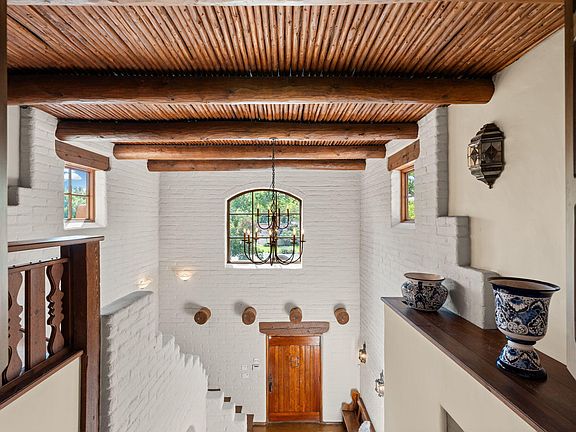 Discover unparalleled luxury and serene living in the exclusive Tinnin Farms community of Los Ranchos de Albuquerque. This exceptional 7,166-square-foot estate epitomizes the elegance and warmth of Santa Fe style, boasting incredible curb appeal and a magnificent presence in this verdant locale. The Santa Fe style is on display throughout the home, with iconic architectural details including rustic wood beam ceilings, classic diamond plaster walls and stained concrete floors with radiant heat that add a durable and stylish touch.The chef's kitchen features top-of-the-line amenities designed for both casual family meals and high-end entertaining.