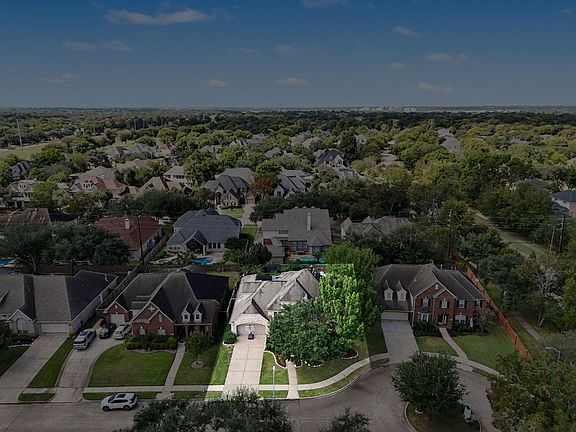Located in the sought-after Greatwood Tuscany Place subdivision, this beautifully maintained two-story home offers 3,681 sq/ft of refined living on a 10,063 sq/ft cul-de-sac lot. Built in 2001, it features five spacious bedrooms and four full baths, including a serene primary suite with pool access, dual vanities, jetted tub, and glass shower. The kitchen boasts quartzite countertops, double ovens, gas cooktop, and a large island with elegant waterfall edges, opening to the inviting family room with fireplace and backyard views. Formal living and dining areas enhance its charm, while a home office, game room, and media room offer flexible space. Outdoors, enjoy a heated gunite pool with spa, covered patio, and ample yard for entertaining. A three-car tandem garage, wood and tile floors, and energy-efficient upgrades complete the home. Greatwood amenities include golf, pools, tennis, pickleball, and scenic walking trails zoned to Lamar CISD.