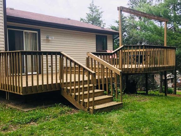 New and approved!! New siding this week. Newer roof, gutters in 2014, newer furnace and ac unit. New carpet upstairs .Great Location convenient to highways, shops and walking distance to Harbin Park! L-shaped Quad, spacious kitchen, tiered deck. Large over sized two car garage. Nice large four level home . A must see!