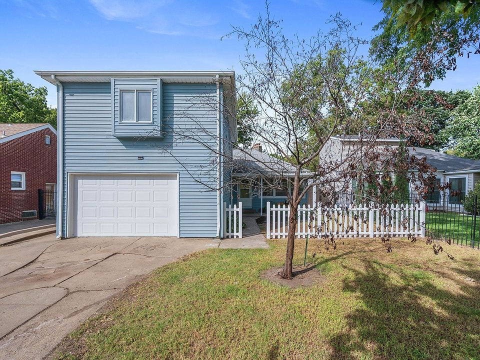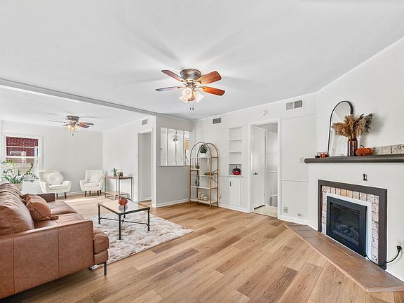Welcome to your new home in the sought out North Riverside Neighborhood! This home has been thoughtfully renovated with the most tasteful finishes for its new owners. On the main floor you will find an open family room with extra living space that features an electric fireplace insert. The two main floor bedrooms have ample closet space and the fully renovated bathroom boasts a tile shower/tub combo. Inside the living / dining area you will see the round glass cube wall that truly captures the beauty and charm of Riverside. The fully renovated kitchen has quartz countertops, a refrigerator, stainless steel dishwasher, range, & microwave that all remain with the home! The laundry/utility room is located on the main floor with entrances off of the living room and kitchen, making it easily accessible and offering convenience for its new owners. Upstairs you will find additional living space with extra storage, which could make for a great office, nursery or gym. The 3rd bedroom, also located upstairs, features a walk-in closet and a full en-suite bathroom with a tile shower. Outside you will find a brand new insulated garage door as well as a new roof that was installed October 2025. The fully fenced landscaped backyard features a swing-set and chicken coops that would also make for great dog runs. Schedule your private showing today!