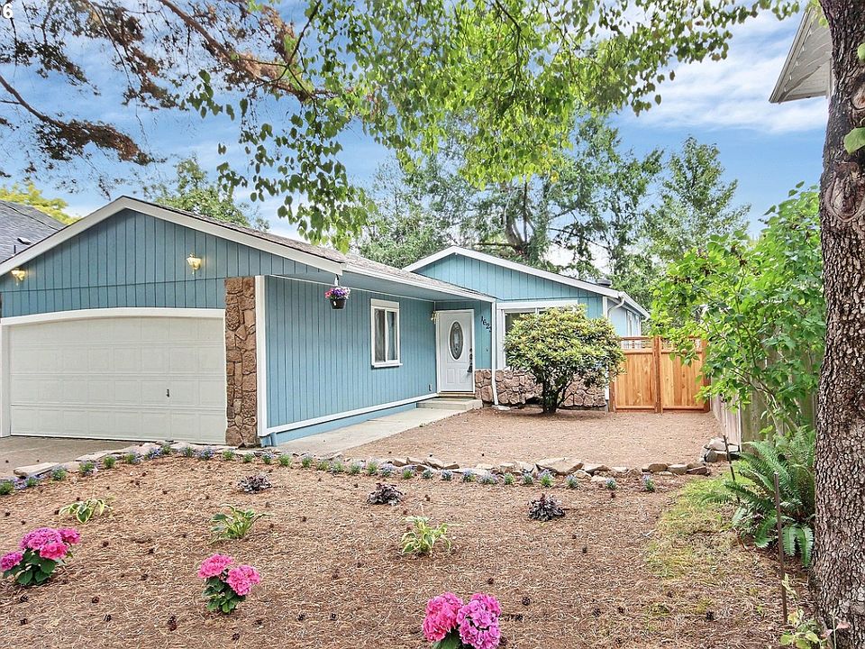 Excellent condition and great location. Updated with new floors, heat pump, new kitchen counters, new tile in bathroom, new exterior / interior paint. Bedrooms to be carpeted prior to close. Dining area, kitchen open to living room, Large 2-car garage.