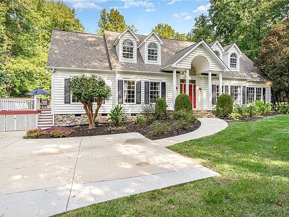 Outdoor living at its finest in stunning Northwest Guilford County! Step onto the expansive deck and unwind in the hot tub, all in the seclusion of a lush, wooded 1-acre lot. This home's prime location is a major advantage, just minutes away from the airport, Hwy 68, I-40, the Greensboro Urban Loop, and I-73. On the main floor, you'll find a spacious primary suite with 2 walk in closets, a convenient first-floor laundry, well-appointed kitchen and breakfast space, elegant formal dining room, den with gas fireplace, and an additional space ideal for an office or formal living room. The 2nd floor offers an extremely unique floor plan with 2 large bedrooms and 2 extra rooms that offer many wayts to be creative--think office space, gym, huge closet! Fresh coat of paint throughout, brand-new carpeting on 2nd floor. Enjoy the comfort of dual heating and cooling units, with the 2nd floor unit replaced in 2020 and the main level unit replaced in 2021. No HOA! USDA Eligible