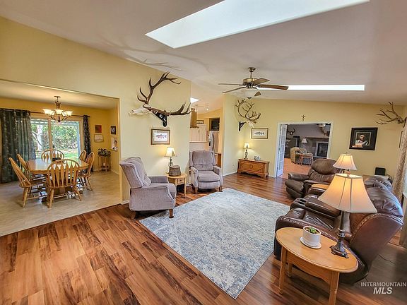 The convenience of town and the quiet of the country! This home features one level living with TWO SHOPS (28x36 & 24x40) on a .72 acre lot! Inside you'll appreciate light & airy feel! The living room has a vaulted ceiling with skylights. The family room is huge and cozy at the same time with a gas fireplace. There are three main level bedrooms and two and 1/2 baths. The laundry room has handy lockers, an outside entrance and a half bath! Outside feels like a park, and is really private! Raise a garden, have some chickens park an RV (has a dump!)or relax on the front porch, the covered patio or under the pergola. One of the shops has a bathroom and 30 feet of workbench space! The home inspection is complete!