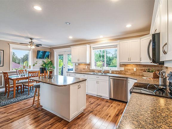 Expansive Madrona Heights Family Home! Set on a beautifully landscaped .50-acre lot, this spacious 6 Bed/3 Bath Family Home offers one-level living with a finished WO lower level, a large Family Room, an Office, a sun-drenched yard for outdoor living, a garden area, plus extras like a Dbl Garage and RV parking. Located just mins from beach access, 10 mins to downtown Parksville, and a short drive to Qualicum Beach and North Nanaimo. Sunny south-facing front yard with gardens and palm trees. From the tiled foyer, stairs lead up to Living Room with a cathedral ceiling and hardwood floors, and an open Kitchen/Dining Area with crown molding. French doors open to a deck and park-like backyard. Main level hosts 3 Bedrooms, 2 Baths; lower level offers a huge Family Room with Wet Bar, 3 more Bedrooms, Bath, Office, and Storage Room. Fenced park-like backyard with shed and gardens. Visit our website for more.