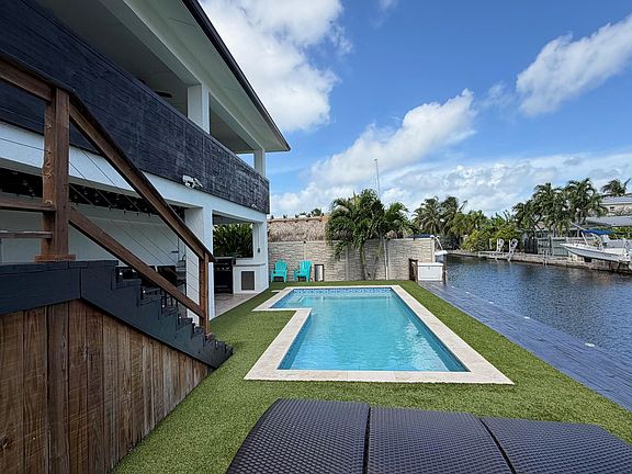WATERFRONT!! EXITS TO THE OCEAN. FULLY FURNISHED HOME, READY TO MOVE IN. ONE OF THE FEW CANALS LEADING TO OCEAN INSIDE KEY WEST.Completely remodeled Oceanfront 3 bedrooms, 2 bathrooms, 2 car garage, completely furnished dream home on the water with game room and a 50ft dock on a very private neighborhood. This home is move in ready. UPSTAIRS- This home has a brand new top of the line kitchen with wood cabinets and quartz tops, huge modern quartz island style counter on an open floor plan layout. Two beautiful new bathrooms with top of the line fixtures. New high-end water proof laminate floors upstairs and new modern tiles downstairs. Brand new 5 inch modern baseboards throughout the property. It comes with all new black stainless steel appliances. New central air conditioning system. Impact windows and doors. New sofa, dining table, beds, Tv's, Dresser, office desk, counter stools, cooking pots and pans, dishes, cups, silverware, towels etc., this home has it all. Master room with walking closet. Closet barn doors and much more. DOWNSTAIRS- the dream game room. It comes equipped with many features. Features a bar quartz countertop area as well with new black stainless steel extra refrigerator and chest freezer, Futon style sofa with TV, basketball hoops, foosball, pin pong table, pac-man machine with 16 games, bicycles and connect four games. GARAGE AREA- This is a full two car garage with commercial grade storage and metal work station counters, half a bathroom downstairs with sink. OUTDOORS- Fully fenced home out front and sides making it a secure fort. Space on the side to park boat trailer or RV. Outdoors kitchen with granite countertops, sink and barbecue. Complete dream home. Set up for immediate move in.