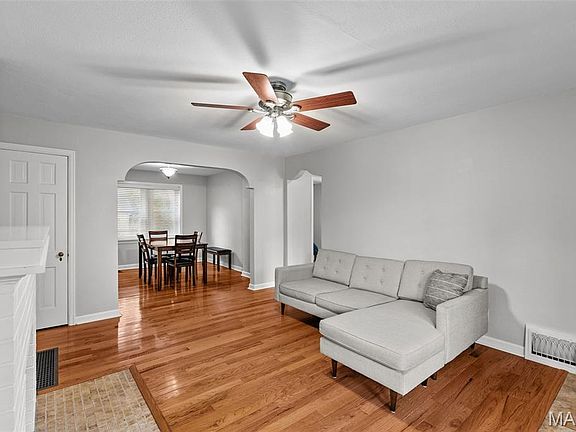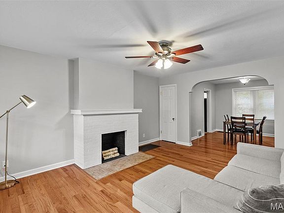 Welcome to this charming 2-bedroom, 1-bath home in the heart of Richmond Heights. The curb appeal shines with its columns and covered front porch, setting the tone for what you’ll find inside. Step into the inviting living room where hardwood floors and a cozy fireplace create a warm gathering space that flows seamlessly into the dining room overlooking the fully fenced backyard. The kitchen features tile floors, stainless steel appliances, marble countertops, and a pantry - perfect for everyday living and entertaining. Both bedrooms offer fresh paint, overhead lighting, ceiling fans, and clean carpets, with the front bedroom enjoying abundant natural light. The updated bathroom boasts a subway-tiled tub and a linen closet for extra storage. Downstairs, the basement provides laundry (washer and dryer included), plenty of storage, and room to expand. Major updates include a brand-new roof (2025), HVAC about 4 years old, fresh paint, some tuckpointing, and off-street parking with a garage suitable for a small car or extra storage. Easy one-level living, ideal for a first-time buyer or anyone ready to downsize with low utilities. Enjoy being just two blocks from Olympia Kebab House and minutes from Maplewood’s shops, restaurants, and nightlife. Passed Richmond Heights occupancy - move-in ready and waiting for you! Check with your agent about included appliances and offer deadlines. This house is going to sell fast!