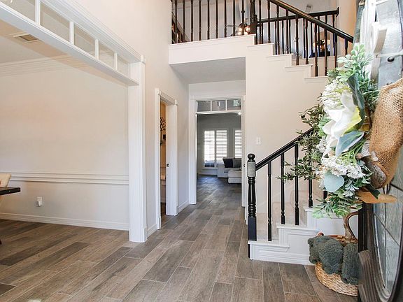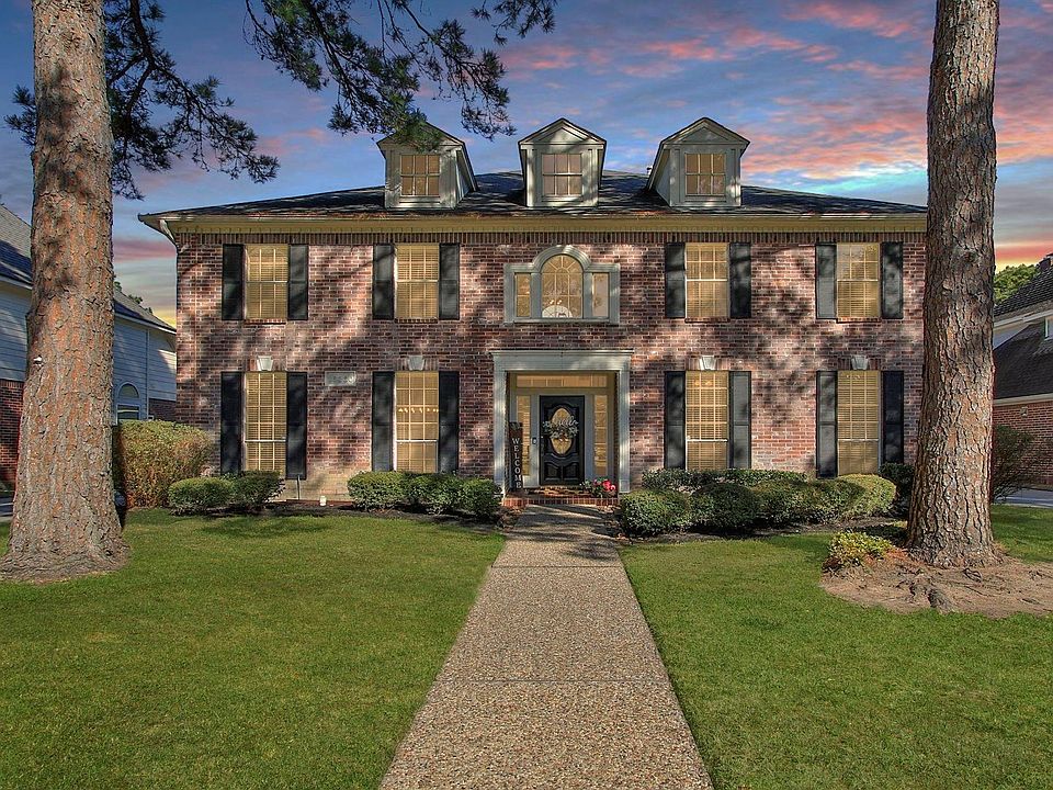 CUSTOM 5-BEDROOM HOME ON A QUIET STREET! This impressive 2-story entry showcases striking architectural details, wood-look tile flooring, & a new chandelier. A private home office w/French doors & an elegant formal dining room set the stage for refined living. The updated kitchen features granite countertops, an island cooktop, & a dramatic 2-sided fireplace that anchors both the kitchen & family room. Plantation shutters throughout the 1st floor add timeless style, while the den & breakfast area offer tranquil views of the resort-style backyard. Enjoy effortless outdoor entertainment under the covered patio w/ceiling fans. Must see fabulous pool & spa! The primary suite is a true retreat w/a wall of windows & backyard views. The renovated primary bath offers tile flooring, dual closets, a granite vanity, jetted tub, & separate shower. Upstairs includes 4 spacious secondary bedrooms, 2 full baths, a game room w/custom-built-ins, & a bonus room ideal for a study nook or creative space.