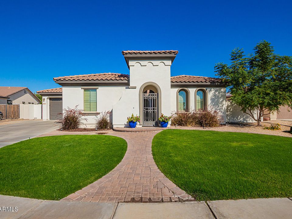 Welcome to your own slice of paradise! This exquisite home greets you with a cozy courtyard, and a roomy 4-car garage. Inside, you'll love the stylish tile floors, plantation shutters, and pre-wired surround sound that set the mood for every occasion. Chef's kitchen steals the show with SS appliances, wall ovens, endless cabinets, a mosaic tile backsplash, granite counters, and a center island with a breakfast bar perfect for morning chats. Enjoy gourmet meals in the elegant formal dining area. Main bedroom delights with direct backyard access and a walk-in closet, while the den, complete with built-in cabinets, makes the perfect home office or reading retreat. Spacious backyard offers a covered patio, lush grass, and plenty of room for fun under the sun. Make it yours now!