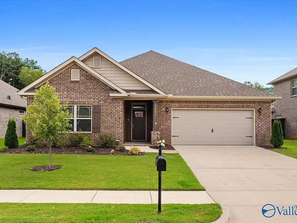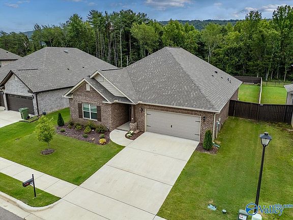 Enjoy 1 level living in this spacious 3bed/2bath/2car Full Brick Home. Views of the Foothills in South Hsv. Zero Carpet – you’ll find LVP & tile throughout. Open concept living, dining, kitchen & breakfast area ensure you can stay connected no matter what size gathering your hosting. Continuing outside to the covered patio & extended patio you’ll be rewarded by a beautiful fenced in back yard. Boarding tree line adds privacy & serenity. The detached storage shed, & garden boxes remain. Don’t wait to make this easy move in home yours today! Quick (appx 8min) Commute to Gate 3 Redstone Arsenal. 1Mile to Ditto Marina. Convenient to Shops & Eateries. Community is Adj to Aldridge Creek Greenway.