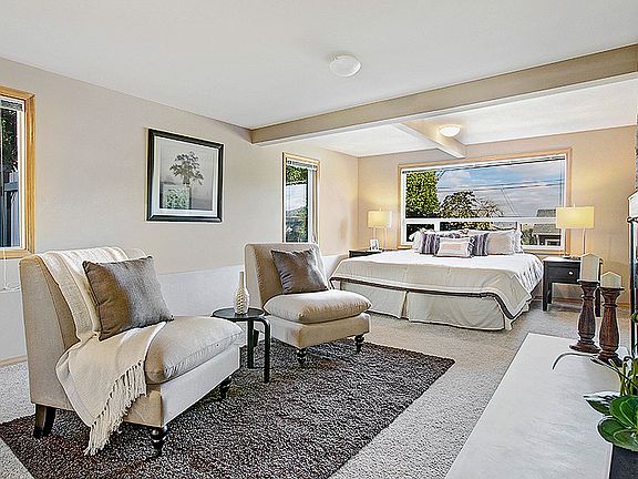 Lovely,light-filled,relish the vibe in this stylish 3 bedroom/3 bathroom view home. Watch the snow melt on the Cascades, the sun rise on Mt. Rainier on big deck.The kitchen is modern with a huge dining room and a lovely rear deck. Master suite includes a fireplace, walk-in closet, huge spa bath and sitting area, 5-star living! 2nd bedroom with its own bath and full utility room complete the lower level. Your garage will hold all of your toys, and 2 cars. A big yard for fun and entertaining! Wow!