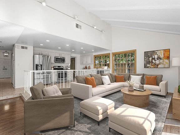 This beautifully updated 4-bedroom, 2-bathroom home is the perfect blend of modern style and comfort. Nestled in the desirable Granada Hills neighborhood, it boasts an inviting open floor plan with vaulted ceilings that create an open airy feel throughout. Recessed lighting highlights the home's many elegant details, making it ideal for both relaxation and entertainment. There's a front bedroom that's bright and seamlessly connects to a charming private courtyard, offering a peaceful retreat for morning coffee or evening gatherings. The remodeled spacious kitchen is a chef's dream, with stainless steel appliances, sleek countertops, and ample cabinet space. The kitchen is adjacent to a step-down family room with French door access to a private backyard. Each of the bedrooms provides plenty of natural light, and the bathrooms have some modern finishes. The large master includes engineered hardwood floors, walk-in closet, and separate vanity area from the ensuite bathroom. Whether you're looking for a quiet sanctuary or a place to host friends and family, this home is the perfect spot. With easy access to the 118, 405, and 5 freeways, and conveniently located near top-rated schools, parks, and shops, this Granada Hills gem won't last long. Don't miss out on the opportunity to make this home yours! Some images include virtual staging. Showing by appointment only.