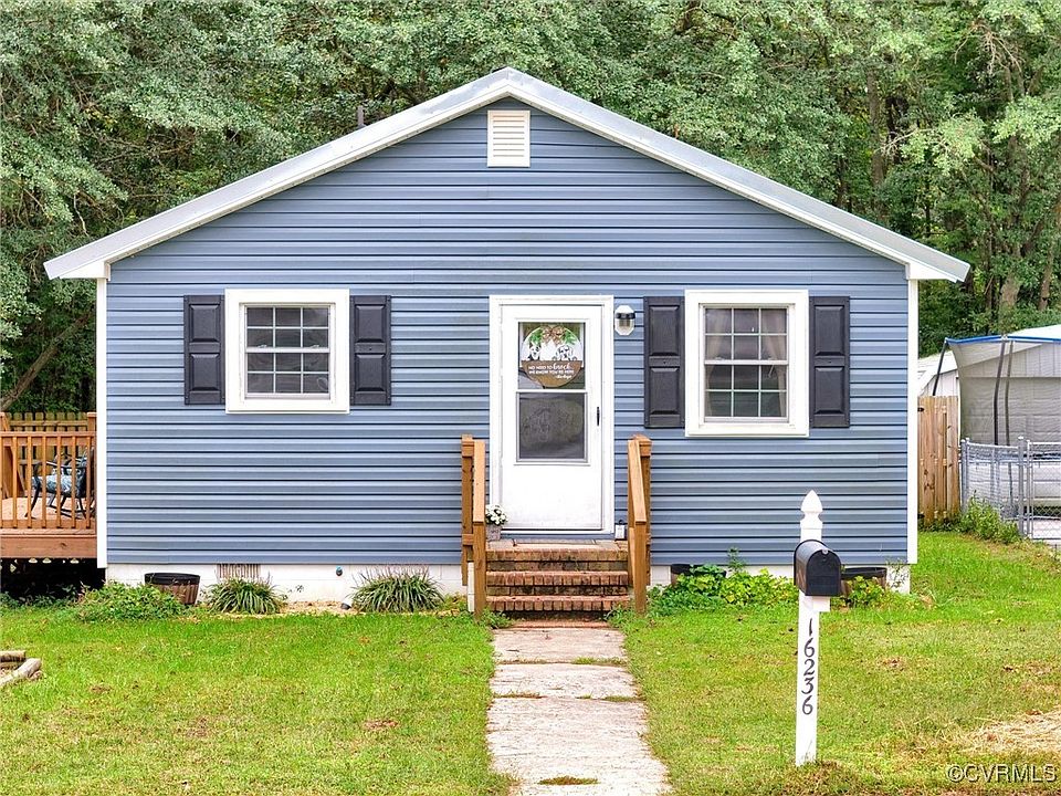 ADORABLE Bungalow style home in Chester!! Perfect starter home! Super cute layout with spacious living area and eat in kitchen. 3 Good size bedrooms, all with ceiling fans! One full updated bath! All appliances convey! Seller will be replacing the carpet! Great location and good size lot! Vinyl siding in 2020, Metal Roof in 2019, Privacy fencing with 3 gates in 2022, HVAC replaced in 2022, Gutter Guards in 2022, windows have been replaced, and large storage shed was recently refurbished. Generous sized deck off of kitchen offers a great space to entertain. Double width driveway for off street parking. Fantastic location and turn key!!