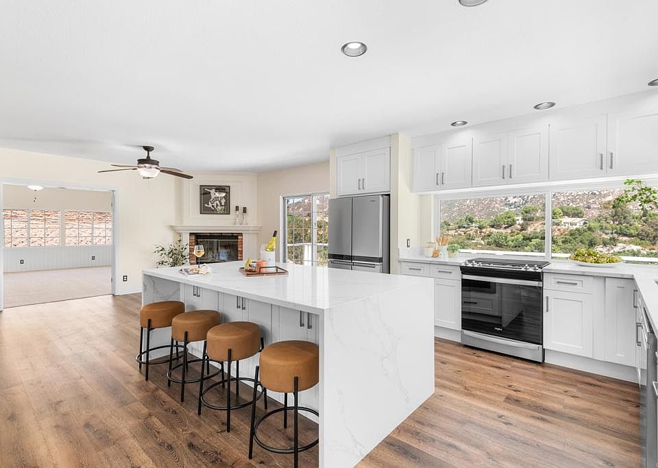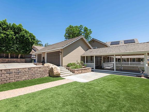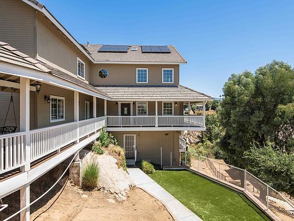 Nestled in the peaceful San Diego Country Estates, this beautifully upgraded property has been meticulously enhanced, showcasing the pride of ownership in every detail. This exceptional property has been maintained, remodeled and upgraded with utmost care including ***PAID SOLAR***, fresh paint inside and out, all new LED lights, new bathroom vanities, new quartz counters, new carpet, even electrical outlets and switches and more! Beautiful front yard, thoughtfully landscaped for low maintenance, welcomes you past the FINISHED THREE CAR GARAGE WITH BRAND NEW EPOXY FLOORS, through the shady gated front porch and a lovely courtyard, into a bright and open living space with soaring ceilings and abundance of natural light immediately drawing your eye to the breathtaking views outside. The BRAND NEW KITCHEN is every entertainer’s dream with its giant quartz island, ample new cabinets, new stainless appliances and oversized windows framing the SPECTACULAR PANORAMIC VIEWS! Step through the sliding glass door onto your expansive WRAP AROUND DECK offering a welcoming space to enjoy the serene outdoors. Upstairs, the primary bedroom is a restful sanctuary fit for royalty with floor to ceiling windows, its own large balcony, an en-suite bath with FOUR generously sized closets, two vanities, separate shower and water closet and a soaking tub overlooking.. you guessed it, more stunning views! Three other bedrooms are spacious, bright and share a full bath with the laundry room conveniently located upstairs. There’s even a HIDDEN BONUS ROOM! Can you find it? The lower level of the home is a TWO BEDROOM GUEST SUITE, where modern elegance meets casual comfort. This chic space with its own kitchen, laundry, balcony and a separate private entrance, boasts updated finishes, a stylish open-plan living area, and two cozy bedrooms designed for ultimate relaxation. Whether you're seeking a romantic escape or a serene retreat, this suite offers the perfect blend of sophistication and warmth, ensuring your stay is both luxurious and unforgettable. Not to be missed are the resort-style amenities offered by the premier San Diego Country Estates community with its award-winning golf course, two equestrian centers, dining and event venues, a country store, and miles of hiking, biking, and riding trails inviting you to fully embrace the luxury and beauty of country living.