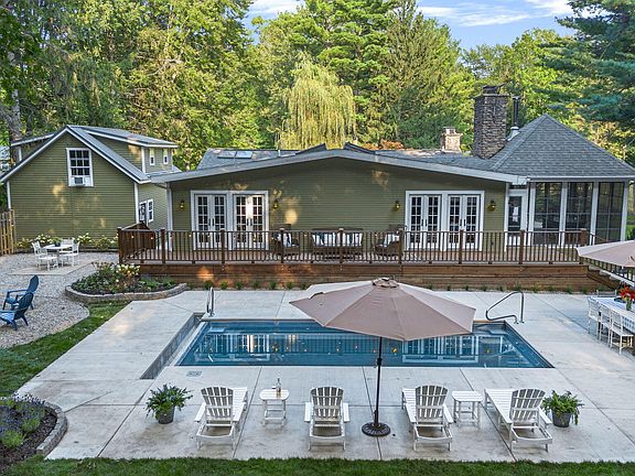 UNION PIER- Amazing-Renovated Compound-The most charming 3 bed- 2 bath POOL HOUSE with massive decks, 2 fireplaces, adorable1bedroom cottage, pond, 1 car garage w/ bonus living space above and less than a mile to one of the best LAKE MICHIGAN beaches. The property has 1 acre of wooded privacy with a huge open yard at the end of a quiet dead-end street. This location has the ultimate privacy but so close to all the restaurants, shops, new townscape & linear-bike trail!! Being sold furnished. The vacation get-away that you thought you would never find or the vacation rental that everyone wants! $1,375,000