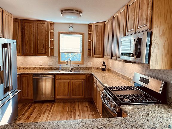 Completely updated 2+ bedroom home with New kitchen, appliances, flooring, plumbing, bathrooms, egress windows and that is ony on the inside! New siding, roof and windows! The seller has installed 2 egress windows in the basement just waiting for either a family room or a few more bedrooms, basement also has a new 3/4 bath and laundry area. Garage doesn't look like much from the outside, but it is insulated and heated on the inside. The car port cover was damaged in a storm and there is a replacement on the way! The lot is 100 x 140, hard to find two lots in town....Ready for you to move in and expand!