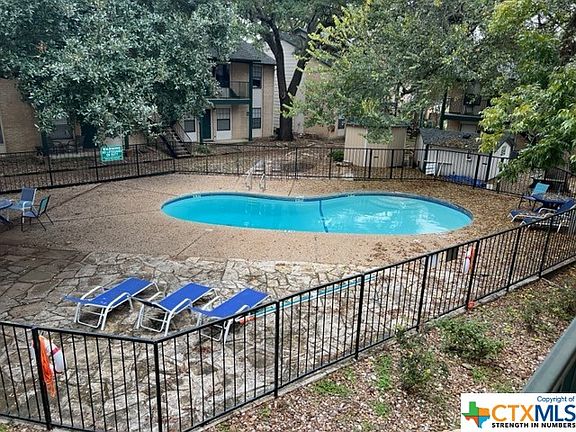 This freshly painted 2 bedroom, 2 bath condo is located in a small condominium community with easy access to several Texas State bus routes, I35, easy walking distance to the San Marcos River, Bobcat Stadium, several restaurants, gyms, coffee shops, a movie theater, and the big HEB in town. Each bedroom in this condo is set up as a master suite with their own private bathroom and closets. This particularly desirable condo is a second floor unit overlooks the pool area and shaded by beautifully established trees. Make sure you add this one to your must see list!Cash or Conventional All measurements to be verified by buyers independently. All information is deemed to be reliable