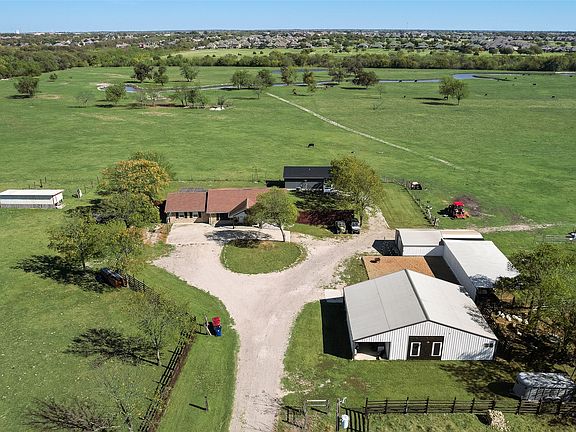 121 rolling acres of pristine Texas countryside, all tucked conveniently inside the city limits and AG Exempt. This rare find combines wide-open space, income potential, and multi-generational living in one incredible property. This property features 3 separate residences, 2 of which are income producing. The main home features 4 bedrooms, 2 full baths, plus office. Primary bedroom is complete w walk in closets and oversized sitting area. Finishes include luxury vinyl plank flooring, decorative lighting, fireplace and spacious living areas designed for comfort and functionality. Barndominium is beautifully designed with an open floor plan, vaulted ceilings, with 2 bedrooms and 1 bath. The updated kitchen boasts an island and modern finishes, while the living area features a cozy fireplace. Enjoy outdoor living in the private courtyard complete with a firepit — perfect for entertaining or relaxing under the stars. The tiny home is ideal for guests or short-term rentals. The 2-bedroom, 2-bath home features a remodeled kitchen with pot filler, stylish finishes, and a back deck overlooking beautiful views. Currently used as an Airbnb, it adds strong income potential to the property. Whether you’re looking for a working ranch, multi-generational estate, or investment opportunity, this property offers endless possibilities — all while keeping you close to town conveniences. Enjoy gorgeous panoramic views, mature trees, and a year-round creek complete with a large entertainment deck — the perfect place to relax or host gatherings. The picturesque pond, abundant wildlife, and bow hunting privileges make this a true outdoor paradise, ideal for nature lovers and cattle ranchers alike. The property is fully equipped for raising cattle and offers city utilities plus quick access to major highways and Stone Creek Golf Course. Experience the best of country living with city accessibility. 116 acres of land is also for sale without residences and can be found under MLS 21104199.