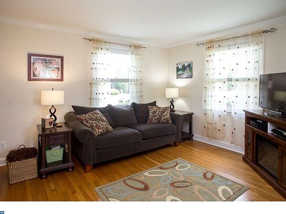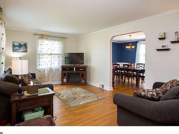 A new Portico welcomes you to this updated traditional brick colonial maintenance free home in Woodmere Park. This home is located in a quiet, desirable neighborhood in Havertown with four bedrooms, three full baths, and a finished basement. The house has a fenced flat yard and complimentary landscaping, so get ready for barbeque season! Step inside to see the refinished hardwood floors throughout, the bright living room with crown molding, the dining room has crown molding with sharp, clean wainscoting and coat closet. Marvel at the new kitchen with breakfast bar, pendant lighting, generous 36' espresso cabinets, travertine back splash, granite counters, stainless steel appliances, and pantry. Exterior French single door leads to the deck and another interior French door leads you into a finished basement with new carpet, neutral colors, a full bathroom and laundry room. The second floor consists of three generous bedrooms with sunlit windows and generous closets. Bedroom two has beadboard with chair rail. The front master bedroom is so generous, it houses a king size bed with night tables comfortably. The third spacious bedroom has a walk-in closet. Updated hall bath completes the second floor. Other upgrades include newer windows, hardwood floors, new vinyl siding, replaced trim baseboard, overhead fans in master and bedroom #2. Storage is available in remaining portion of garage. The house is conveniently located and walkable to the Middle and High schools, shopping, and trains. Welcome home!