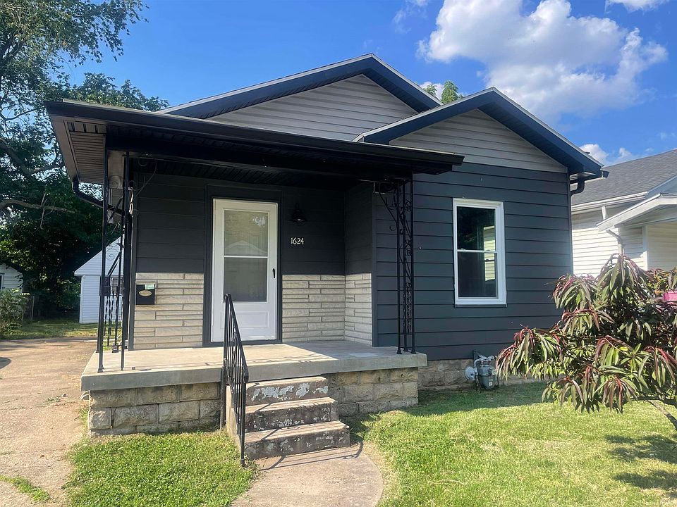Welcome to this adorable home located on Evansvilles northeast side. This charming home has been extensively remodeled and has a ton of updates. You will find new flooring and fresh paint throughout, as well as, new lighting fixtures and ceiling fans. The living room has built in shelving for added character and both the living room and both bedrooms have brand new neutral carpet. The eat-in kitchen has new laminate wood flooring, brand new white cabinets & neutral countertops, new lighting, a brand new stainless steel cooktop stove, and a brand new deep sink and faucet. The bathroom has all new fixtures including new toilet, lighting, towel racks, mirror, and vanity. The HVAC and roof are both approximately 5 years old. Don't forget to check out the new doors and the brand new replacement windows throughout too! Step into the large fenced in backyard and you will find a very spacious storage shed, perfect for storage or an extra she-shed/man cave.