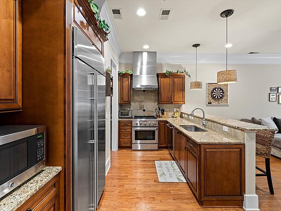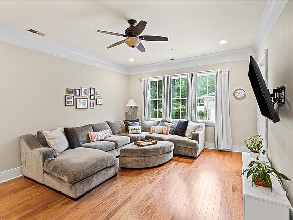 Immaculate, Brownstone-Inspired Luxury Townhome in the Heart of Mt. Pleasant!This stunning residence combines timeless elegance with modern sophistication. Featuring 10-foot ceilings on the first and second floors, 8-foot doors, detailed crown molding, and 7.5-inch baseboards, the home exudes charm and upscale craftsmanship throughout.Upon entering the foyer, you're welcomed into a separate formal dining room complete with a wet bar and custom cabinetry--perfect for entertaining. A butler's pantry connects the dining room to the kitchen, offering additional storage and functionality.The gourmet kitchen is a chef's dream, equipped with upgraded GE Monogram stainless steel appliances, including a custom built-in refrigerator, vented hood, gas range, granite countertops, andrich hardwood flooring that flows through the main level and staircase. The open-concept family room overlooks a fully fenced, beautifully tiled courtyard ideal for indoor-outdoor living. Just beyond are two designated off-street parking spaces. Upstairs, the spacious primary suite features a luxurious ensuite bathroom, a large walk-in closet, and access to a serene open-air balcony - perfect for morning coffee or evening relaxation. Extra-large storage closets provide ample space throughout. Premium finishes continue with architectural Pella windows, ceiling fans, canned lighting in every room, an Ecobee4 Smart Thermostat, and an irrigation system for the front yard. This home is truly move-in ready, allowing you to immediately enjoy all that Charleston has to offer. Located in the desirable Park West community, residents enjoy access to walking trails, tennis courts, two pools, and a clubhouse. Plus, you're just a short drive from the pristine beaches of Isle of Palms and Sullivan's Island, as well as historic downtown Charleston.