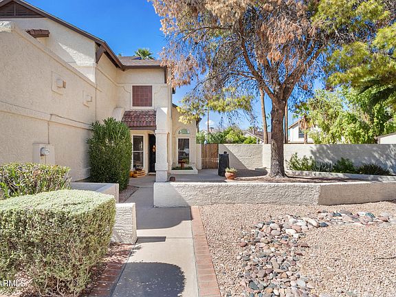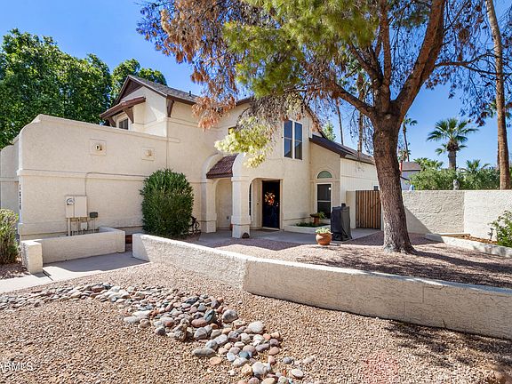 This is a Beautiful 3-Bedroom, 2.5-Bathroom, 2-Car Garage Home sitting on a huge premium over-sized cul-de-sac lot in the desirable city of Chandler. The family room features tall vaulted ceilings and cozy fireplace. The eat in kitchen boasts tiled counter tops, white cabinets, matching white appliances and breakfast bar. The primary suite has six foot tall windows over looking backyard, large on-suite including double sinks, vanity and double wide closet. Entertain out back under the extended covered patio and additional ramada with lots of beautiful pavered extensions, or just relax in the sparkling pool, or play in the grassy area. You can also store all the extras in the over sized shed. This is a must see!!
