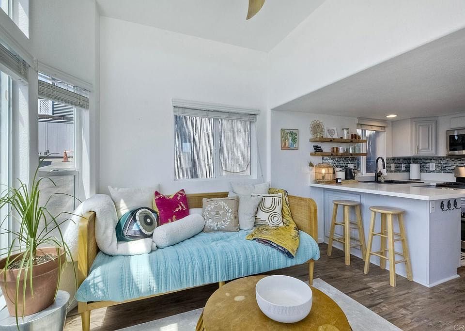 SELLER MOTIVATED SO BRING ALL OFFERS!! This is absolutely the PERFECT beach house! Immaculate, light and bright and just steps to Grandview beach, this adorable, remodeled home offers a spacious floorpan with 2 bedrooms/1 bath, laminate flooring, washer/dryer, large covered and uncovered deck on first floor and spacious balcony off upstairs bedroom with wonderful easterly neighborhood and sunrise views. Walking distance to restaurants, coffee shops, surf shops, wineries, breweries, boutiques, Farmer's Market, the beach and the sunset! This home can be used as a primary residence, second home or investment/rental property and can be sold furnished. Home can be sold mostly furnished. Space rent is $2,200/month with no traditional property tax or HOA fees. **PLEASE NOTE the park is currently undergoing SDGE gas & electric updates so roads will be a bit messy till that is completed**
