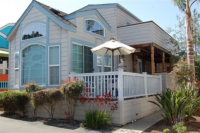 Excellent opportunity to own a cozy 2 story FULLY FURNISHED beach bungalow west of the 5 for a fraction of the cost of a traditional home. Very close to the beach, shopping, restaurants and more. Large loft that could be used for a 2nd bedroom. Lower deck with spa. Private balcony. No property taxes
