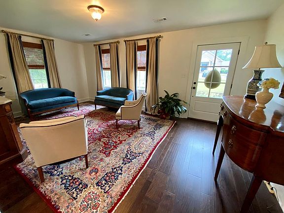 Beautifully renovated and MOVE IN READY this French Cottage style home has so much appeal! Step through the front door into a formal living/dining room that opens into the Eat-In Kitchen with custom cabinetry, Island with Farmhouse Sink, Built-in Bench and Stone Countertops. The kitchen opens into the den area that features a tray ceiling, fireplace and picture windows across the back. A brick patio is through the French doors flanking the fireplace. The split floorpan has a spacious Master Bedroom with an en suite bathroom with large tiled shower and double vanity. The generous walk-in master closet also includes space for the washer/dryer. The guest bedrooms on the other side of the home share a bathroom that has a tiled tub/shower. Perfect spot for a pool in the backyard and the screened Pavillon, storage room and carport is huge PLUS! NEW ROOF on house and shop!Call today for appointment!