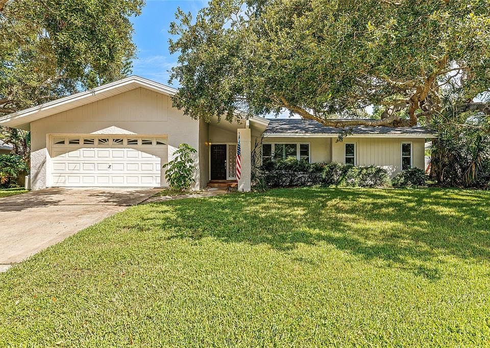 Welcome to 1624 Pine Place, an inviting and updated 2-bedroom, 2-bath home tucked away on a quiet cul-de-sac in the sought-after Windsor Woods neighborhood. This spacious home offers 1,716 square feet of comfortable living space with a thoughtful split floor plan, a fully updated kitchen with modern cabinetry and appliances, a formal dining room, and a light-filled living area featuring crown molding and a charming bay window. The oversized primary suite includes his-and-hers closets and an updated private bathroom with a walk-in shower, while the second bathroom remains in its original, well-kept condition. Step outside to your own private oasis with a large screened-in pool, surrounded by mature trees on a generous .30-acre lot. Most of the windows have been replaced, and the oversized two-car garage provides ample storage. Located in an X flood zone with no history of flooding, this home offers both peace of mind and a wonderful lifestyle in one of the area's most established and welcoming communities, while being only just a short drive to the beach!