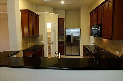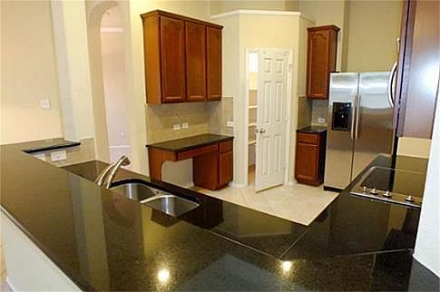 Updated and ready for move-in! New carpet and fresh paint in September 2013! Separate dining room adds a touch of class to your dinner party. Split floor plan with master at the rear of the home. Upgrades: Granite counters, 42in upper cabs, arched doorways, art niches, kitchen desk, stainless steel appliances, cherry cabinets, deep jetted tub, Austin stone fa ade, surround sound in living room, 2 inch blinds and sprinkler.