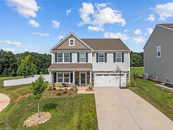 Like-NEW CONSTRUCTION(2024)!Beautifully maintained 5-bedroom, 3-bathroom home with bonus room and over 3,000 sq feet of living space! Located on a cul-de-sac, this home features a fully fenced backyard with a serene tree line in the rear. The spacious gourmet kitchen boasts stone countertops, an oversized island with barstool seating, and high-end finishes throughout. Enjoy meals in the sunny breakfast nook or entertain in the formal dining room. The open-concept layout seamlessly connects the kitchen to the large living room with a gas fireplace. Main level includes a guest bedroom and full bathroom, attached 2-car garage with a convenient drop zone for everyday storage. Upstairs, 4 additional bedrooms and a massive bonus room. The luxurious primary suite features dual closets and a spacious en suite bathroom. Located in the heart of Kernersville with easy access to restaurants, shops, High Point, Winston-Salem, Greensboro, Union Cross & I-40 - Back on market no fault of sellers.