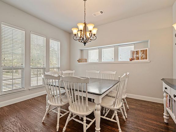 Welcome to this stunning Stone Hollow built home in Silverstone Pearson Ranch. This property offers a 3 bedroom, 2.5 bath, 3 car garage located on a corner lot. Upon entry you will notice the rich true hardwood floors throughout the first level. The kitchen flows seamlessly into the living and dining areas, ideal for entertaining or family time, and includes double ovens and kitchen island for the home chef.The master suite includes a walk in closet, dual sinks, a garden tub, and a walk in shower, creating a spa like retreat. Upstairs is a perfect retreat for a game room or for guests to stay with a private half bath. Relax under a covered back patio and spacious backyard.
