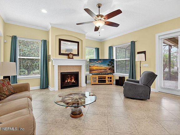 An amazing opportunity to own your Dream Home in the gated King and Bear Golf community! This stunning property custom built in 2013 is nestled on a private road/cul-de-sac with only 7 homes and surrounded by nature with no neighbors across the road or behind your new home. Inside, the spacious open floor plan offers versatility and style that you would expect from a custom built home. Upgraded features include a 3 car garage, 10 foot ceilings, solar tubes, tray ceilings, gas fireplace with custom mantle, tank-less water heater, crown molding, wainscoting, diagonal tile on floors and in showers, pull out kitchen cabinets, laundry tub, special level granite in kitchen and granite in all bathrooms., sprawling pavers, extended lanai, gutters plus so much more. Air conditioning unit replaced in 2023. Four generously sized bedrooms in a split layout, three modern bathrooms, a private office or den, a private office or den, a large family room, formal living and dining areas are exactly what would be expected in this elegant home. The oversized primary suite offers a bump out and two spectacular closets. Step outside on to a sprawling screened lanai and private yard with plenty of room for a pool The 1/4 acre lot is bordered by gorgeous natural preservation ensuring peace and tranquility.1% of sales price toward buyers closing costs and $650 toward appraisal when working with preferred lender. Two world-class golf courses as well as a spa and restaurant, two pools, pickle ball and tennis courts, a state-of-the-art fitness center will add to your active lifestyle.