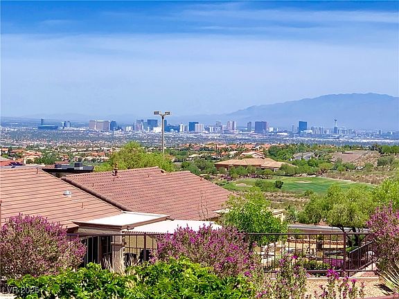 WOW... this home has an amazing unobstructed view of the Strip and mountains from an elevated lot in Sun City Anthem! 55+ aged restricted community. Beautiful Colonial model home with 2 bedrooms and an opened den/dinning room. Fireplace in the family room. Spacious courtyard and backyard. All tile through out the house. Large kitchen w/ Corian countertops and island. Kitchen opens to dinning nook with build-in seating and decorative shelves. All appliances are included. Ceiling fans through out the house. Multiple sliding doors from the house to the backyard. Large walk-in shower in master bathroom. Huge covered patio in the backyard. Golf cart space as the third garage parking space. Total rent amount is including trash and renter insurance. Please pull up the handle to open/close front door.