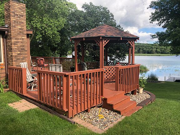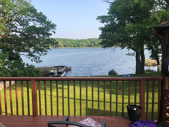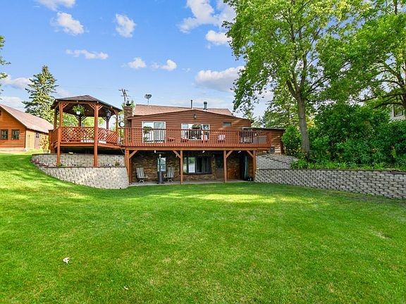 Beautiful views from this 1.5 Story Lakeside Walkout! Complete with large deck overlooking the lake, Keystone retaining walls, two stall detached garage, Shop building, and additional storage shed. This home offers plenty of space inside and out for storing all the toys you will need at the lake. Main floor master, HUGE lower level lakeside family room for entertaining. Lower level office. The perfect balance of convenience and privacy for life at the lake!